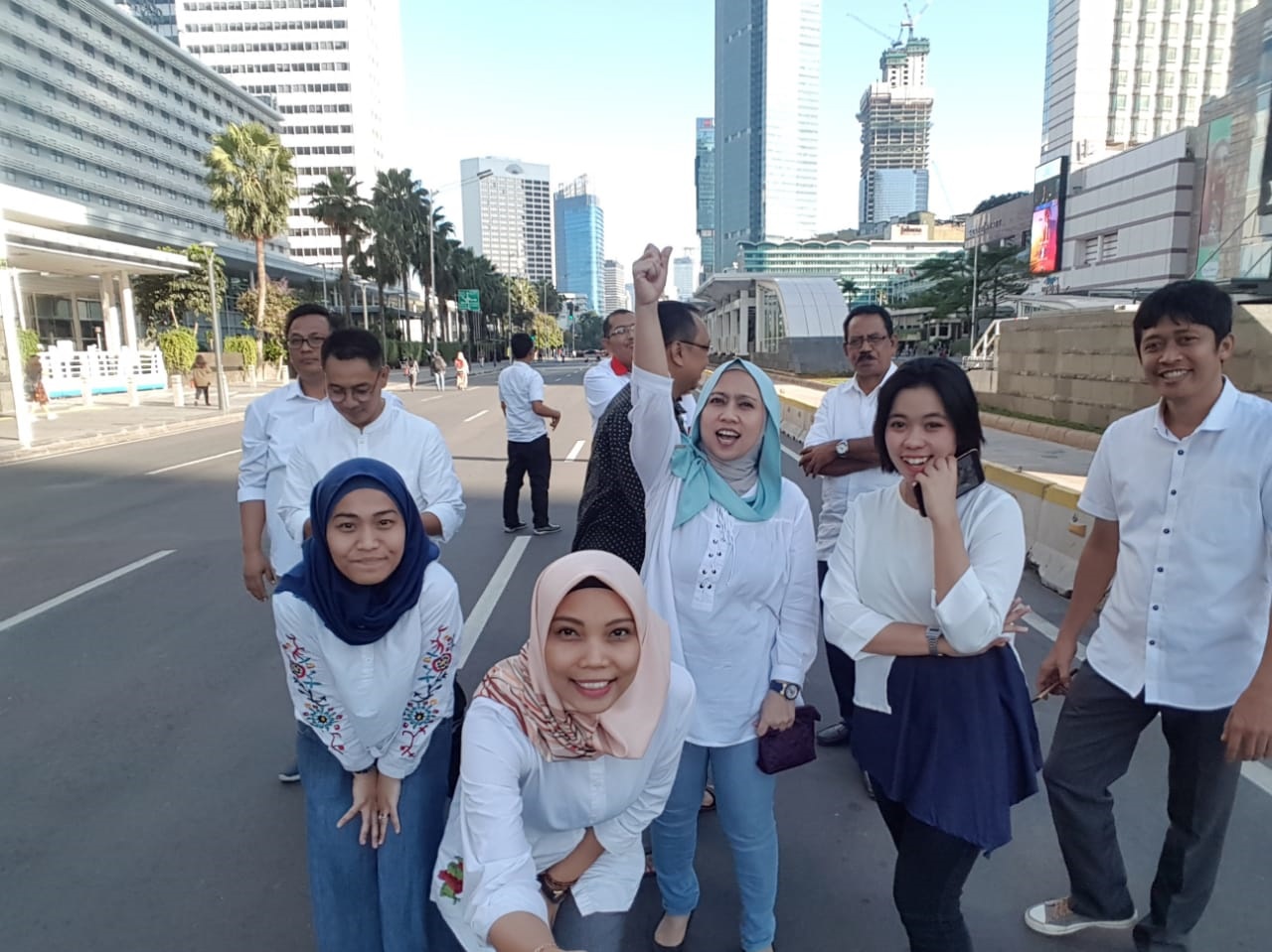 Foto Bersama dengan latar belakang gedung pencakar langit